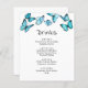 Bleu romantique et exotique de beaux papillons. Élégant menu mariage moderne Boissons.