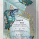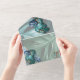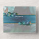 La nature jaillit de vie dans la nouvelle collection Butterfly of Paradise. Éclaboussure tropicale scintillante en bleus, turquoise et feuilles bleu-vert sur un motif noir texturé avec un design de papillons colorés pour le couple de mariés.