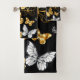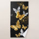 Or, bijoux et papillons blancs sur arrière - plan noir. Papillon d'or.