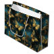 Un élégant grand sac cadeau avec des papillons motif dans des teintes dorées et des bleus brillants.