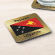 Entertain your guests with a friendly Papuan message on these elegant cork-backed coasters. The design features the flag of Papua New Guinea accompanied by text that is easily edited. If you prefer to select a different message, such as Papuan Welcome or Papuan Socialite, you can simply let your imagination run free.