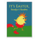 Pâques sur mesure pour grands-parents / grand-père / grand-mère, Get Crackin'! Illustration amusante d'une poussette punk rock avec un mohawk courant autour en partie de sa coquille d'oeuf. Des morceaux de coquillages sont éparpillés sur l'herbe. Ajoutez ou modifiez le texte sous C'est Pâques, pour une carte de voeux personnalisée. Modifiez la relation si vous le souhaitez. Elément de poussette avec l'aimable autorisation de Openclipart. Art, image et verse © Shoaff Ballanger Studios.