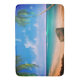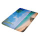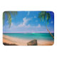 Get whisked away to paradise with this vibrant-colour shower curtain. This curtain features an image of a tropical beach with gorgeous brown sand, cool palm trees, relaxing blue ocean waves, and a beautifully painted canoe sitting on the shore.