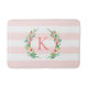This fun trendy design features a blush pink and white striped background with colourful floral wreath. Personalize the design with your monogram initial or other text. Use the design tools to choose any background colours, edit the text fonts and colours or upload your own photos to create a unique monogrammed bath mat.