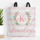 This fun trendy design features a blush pink and white striped background with colourful floral wreath. Personalize the design with your name and monogram or other text. Use the design tools to choose any background colour, edit the text fonts and colours or upload your own photos to create a unique custom monogrammed tote bag.