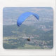 Bright blue paraglider with Clermont Ferrand in the background. The photograph was taken from the top of Puy de Dome, an extinct volcano in the Auvergne, France.