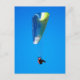 A Paraglider flying in a cloudless blue sky above the Westbury White Horse in Wiltshire, England, United Kingdom