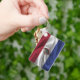 Keychain with the flag of Paraguay in wavy fabric style design. This design features the Paraguayan flag colours and design with a beautiful waving material textured effect. This flag design is a great way to show you are proud to be from Paraguay.