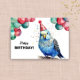 Parakeet Budgie Balloons and Party Hat Birthday Card
