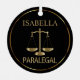 Ornament ready for you to personalize. Featuring a Black and Gold design with the scale of justice symbol and the words "Paralegal" in a gold font placed across the bottom ready for you to personalize. Makes a great gift for any paralegal. 📌If you need further customization, please click the "Click to Customize further" or "Customize or Edit Design"button and use our design tool to resize, rotate, change text colour, add text and so much more.⭐This Product is 100% Customizable. Graphics and / or text can be added, deleted, moved, resized, changed around, rotated, etc... 99% of my designs in my store are done in layers. This makes it easy for you to resize and move the graphics and text around so that it will fit each product perfectly. 📌 (Please be sure to resize, change, add, delete or move any graphics or text if needed before ordering) You can also "TRANSFER DESIGN" on other Zazzle products and adjust the design to fit most of Zazzle items. (click on the transfer area below) Some of the text graphics have ready to fill in the box(es) or you can Click on the "CUSTOMIZE" button to add, move, delete, resize, background colour or change any of the font or graphics. The design is made with high resolution vector and/or digital graphics for a professional print. 📌NOTE: (THIS IS A PRINT. All Zazzle product designs are "prints" unless otherwise stated under "About This Product" area) The design will be printed EXACTLY like you see it on the screen and on the product...so please make sure when you do your changes on the resizing of any of the graphics or text that it fits in the areas correctly and that your spelling and wording is how you like it to be in size, colour and font. If you have any questions about the "DESIGN ONLY" or need help please contact me through my store link: https://www.zazzle.com/store/LetsUDesignIt (Copy and Paste) I'll be happy to help. ⭐ ALL OTHER QUESTIONS SUCH AS (shipping, refund, the printing being incorrect, the product itself, etc...) please contact Zazzle or the Maker ⭐DIRECTLY⭐. Thank you for the support and stopping by my store - LetsUDesignIt. ⭐⭐⭐ ZAZZLE promises 100% satisfaction. If you don't absolutely love it, Zazzle will take it back! ⭐⭐⭐ 1-888-8ZAZZLE (1-888-892-9953) Phone hours: Mon - Fri: 9AM - 5PM PT (12PM - 8PM ET)