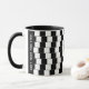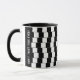 The café wall illusion is a geometrical-optical illusion in which the parallel straight dividing lines between staggered rows with alternating black and white "bricks" appear to be sloped. It was first described under the name Kindergarten illusion in 1898 and re-discovered in 1973 by Richard Gregory. According to Gregory, this effect was observed by a member of his laboratory, Steve Simpson, in the tiles of the wall of a café at the bottom of St Michael's Hill, Bristol. In the construction of the optical illusion often each "brick" is surrounded by a layer of "mortar" intermediate between the dark and light colors of the "bricks". In the first attempt at its deconstruction, the illusion was ascribed largely to irradiation, the light spread from dark to bright zones in the retinal image, and the image disappears when black and white are replaced by different colors of the same brightness. But a component of the illusion remains even when all optical and retinal components are factored out. Contrast polarities seem to be the determining factor in the tilt's direction. [Source: Wikipedia]