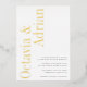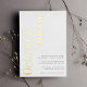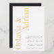 A modern and minimal typography based wedding invitation featuring your names in gold foil serif lettering, running vertically up the left side of the card. Personalize with your wedding details aligned at the lower right.