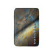 A multi-coloured, fractal image depicting opposed patchwork, metallic, parallel surfaces on a starry background. Add your own text.