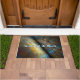 A multi-coloured, fractal image depicting opposed patchwork, metallic, parallel surfaces on a starry background. Add your own text.