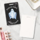 Paranormal Investigator badge with a white sheet ghost on a black background. Spooky cobwebs frame a top and bottom corner of the badge. The back of the badge has a black background. You can add text or a photo here if you wish. Customize the text on the front of the badge to suit! The font style can also be changed using the Design Tool and the text repositioned and removed. This badge will look great as part of a Paranormal Investigator’s attire or worn for fun with a Halloween costume.
