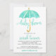 Les invitations douces à la douche pour bébé comportent un parapluie vert menthe dans des aquarelles douces et une combinaison de script et de texte de bloc moderne. Aussi disponible en couleurs garçon et fille. Consultez notre boutique pour la coordination des accessoires, aussi!