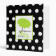 Un classeur de baby shower comportant une illustration d'un parapluie vert sur l'avant au-dessus d'un arrière - plan du pois blanc au-dessus du noir. Personnalisez avec votre nom sur l'avant.