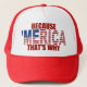 C'est l'original PARCE QUE "MERICA qui est pourquoi casquette de camionneur ! Comporter le qui a reçu un prix et le meilleur vendant 'la conception de drapeau de MERICA États-Unis, et le meme patriotique très drôle. Le casquette parfait pour 4 juillet, le Jour du Souvenir, les Présidents Day, le jour de vétéran, ou TOUT jour de l'année ! Saisissez le vôtre aujourd'hui de ce Pro-vendeur américain de Zazzle, et portez-le avec fierté !