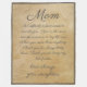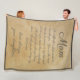 This vintage, antique design blanket features a parchment paper design background in a faded, crumpled, brown appearance. A scripted letter or note is printed across the blanket. A sample recipient "Mom" is printed at the top with a letter or message in the centre. The font resembles an old fashioned book or letter.