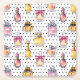 This design features watercolor perfum bottles on a black and white polka dotted background.