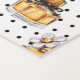 This design features watercolor perfum bottles on a black and white polka dotted background.