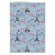 Seamless Paris text illustration with Eiffel Tower, tricolor heart shapes and French flag decoration on blue background for Valentine's Day