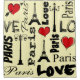 Paris text design for Valentine's Day with red heart shapes, Eiffel Tower and street lamps decoration on yellow background