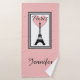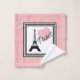 Illustration de Paris avec tour Eiffel et décoration de coeur en rectangles noirs et blancs sur arrière - plan rose
