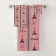 Illustration de Paris avec décoration de la Tour Eiffel et du coeur et design de texte de Paris sur arrière - plan rayé noir, blanc et rose