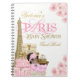 Paris baby shower guest book with adorable ethnic baby girl on a pretty stack of gifts on a beautiful pink and gold floral Eiffel Tower background. You can add the text of your choice and change the background colour to personalize this pretty Paris baby shower guest book and gift log. This is a printed design with no real glitter, bows, etc.