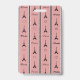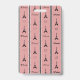 Paris illustration with Eiffel Tower and heart decoration and Paris text design on black, white and pink striped background