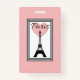 Paris illustration with Eiffel Tower and heart decoration in black and white squares on pink background