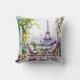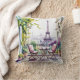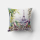 Paris Balcony View Eiffel Tower Watercolor Pillow