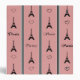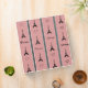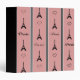 Paris illustration with Eiffel Tower and heart decoration and Paris text design on black, white and pink striped background
