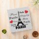 Paris text design illustration with Eiffel Tower and red hearts decoration. It is possible to change the background colour and to add different one to the design with your choice.