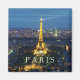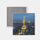 Aerial colour photography - panoramic view over Paris, the "City of Light" and capital of France, with the majestic Eiffel Tower and skyline of La Defence business district in the distance, during the "blue hour" after sunset.
