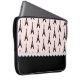 Paris chic laptop sleeve features an eiffel tower pattern on pink background topped with a row of ivory pearls.