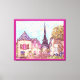 40x32" wrapped canvas of Paris Eiffel Tower inspired pointillism landscape by Kristie Hubler, with orchid fuschia border. Created in 2011, sister version of Paris Eiffel Tower inspired impressionist landscape by Kristie Hubler done in 2002. Originally done on 8 1/2" x 11" printer paper and 2 ounce bottles of craft store acrylic paint, plus coloured pencil, and marker, tweaked digitally with Photoshop Elements. Paris Eiffel Tower inspired pointillism landscape by Kristie Hubler basically took the former art that it was based on, and slipped that into a sheet protector page, and painted over the main key features in the original, and filled in the rest a little differently. This one has sold on Keds sneakers, shower curtains, duvet covers, area rugs, bottle openers, bath sets, a Christmas stocking, fabric. This pointillism art was inspired by the famous pointillist painter Georges Seurat, who painted La Grande Jatte, hanging in the Metropolitan Museum of Art in New York City. Thank you! Kristie