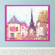 Toile enveloppée de 40x32" de la Tour Eiffel inspirée du paysage pointillisme de Kristie Hubler, avec bordure d'orchidée fuschia. Créée en 2011, la version jumelle de la Tour Eiffel a inspiré le paysage impressionniste de Kristie Hubler réalisé en 2002. Fait à l'origine sur 8 1/2" x 11" papier d'imprimante et 2 onces de bouteilles de peinture d'artisanat magasin acrylique, plus crayon coloré, et marqueur, numériquement ajusté avec Photoshop Elements. La tour Eiffel de Paris a inspiré le paysage pointillisme de Kristie Hubler a pris l'ancien art sur lequel il était basé, et l'a glissé dans une page protectrice de feuilles, et peint sur les principales caractéristiques de l'original, et rempli le reste un peu différemment. Celui-ci a vendu sur Keds baskets, rideaux de douche, couvertures de couette, tapis d'espace, ouvre-bouteilles, ensembles de bain, un bas de Noël, tissu. Cet art pointillisme a été inspiré par le célèbre peintre pointilliste Georges Seurat, qui a peint La Grande Jatte, accroché au Metropolitan Museum of Art de New York. Merci! Kristie