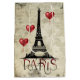 This beautiful Eiffel Tower design features the Eiffel tower on a with a gothic red and grey word "Paris" and floating red heart balloons.