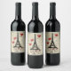 Paris, Eiffel Tower and Red Heart Balloons Script Wine Label