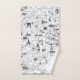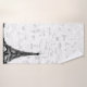 This set of towels features a vintage Paris map in black and white on the hand towel and wash cloth. The bath towel has a graphic of the Eiffel Tower with the map in the background.