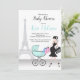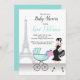 Paris Theme Invitation, elegant and stylized. Eiffel Tower visual and a lovely generic colours makes a wonderful Baby Shower theme for your celebration.