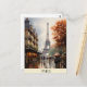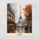 A stylized Eiffel Tower with its surrounding houses and the streets of Paris postcard.