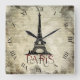 Paris, Eiffel Tower Vintage Script Square Wall Clock