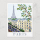 Capture the charm of a romantic Parisian morning with this elegant illustrated Paris postcard. Featuring a soft watercolor-style scene of classic French architecture, balcony railings, and the iconic Eiffel Tower rising in the distance, the artwork evokes the peaceful feeling of looking out over the city from a quiet apartment terrace. Delicate greenery and gentle colors add warmth and atmosphere, making the design both timeless and inviting.