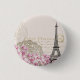 Paris France Travel Design with Eiffel Pink Roses 1 Inch Round Button