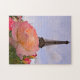 Challenge your puzzle making skills with this shot from Paris of the Eiffel Tower and the spring blooms.