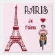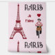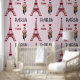 Eiffel Tower and a girl on a bicycle with baguette and beret