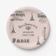 The Eiffel Tower, Paris in vintage typography and vintage French labels for fine wines, champagne and cocoa on a soft pink background make a lovely and interesting paper plate. Matching items and other vintage French designs are available in my Zazzle store.